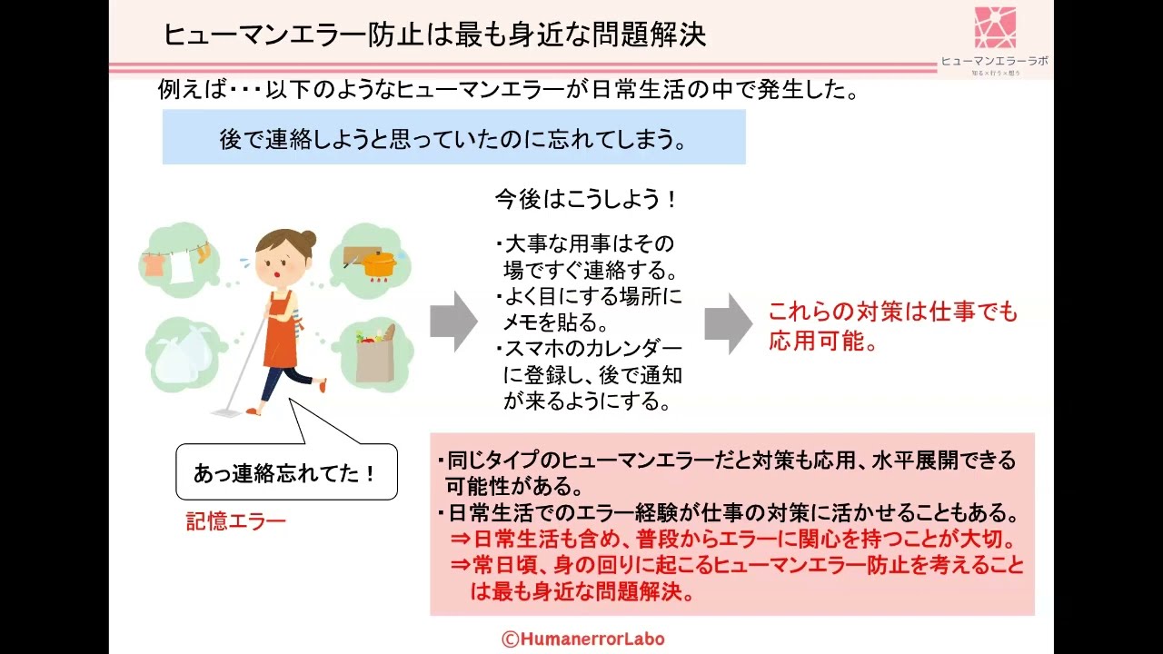 普段は、主に、企業・組織を対象に、ヒューマンエラー防止の支援をしております。それ以外にも、もっと、ご支援させていただく対象や内容を広げて、ヒューマンエラー防止活...