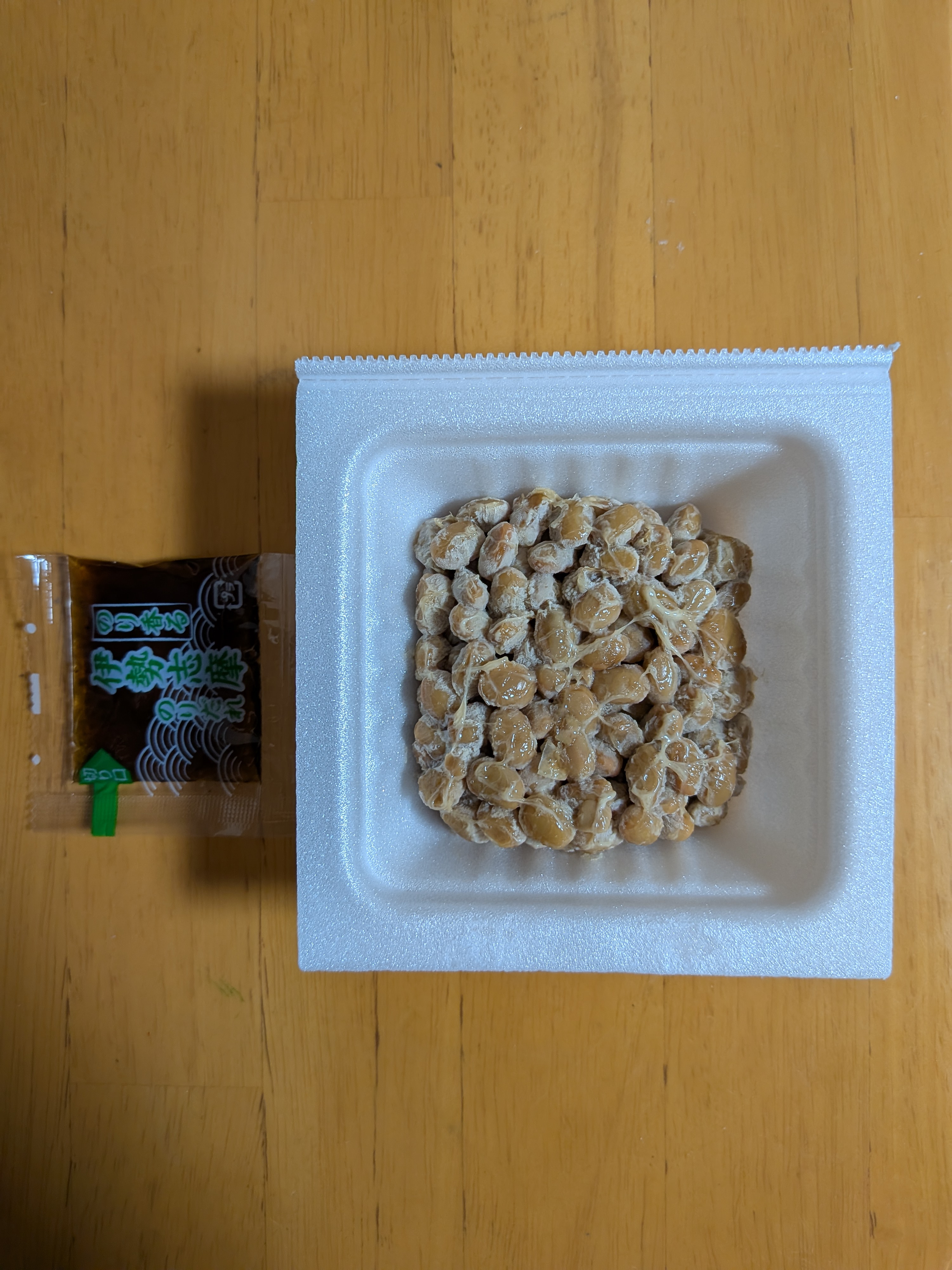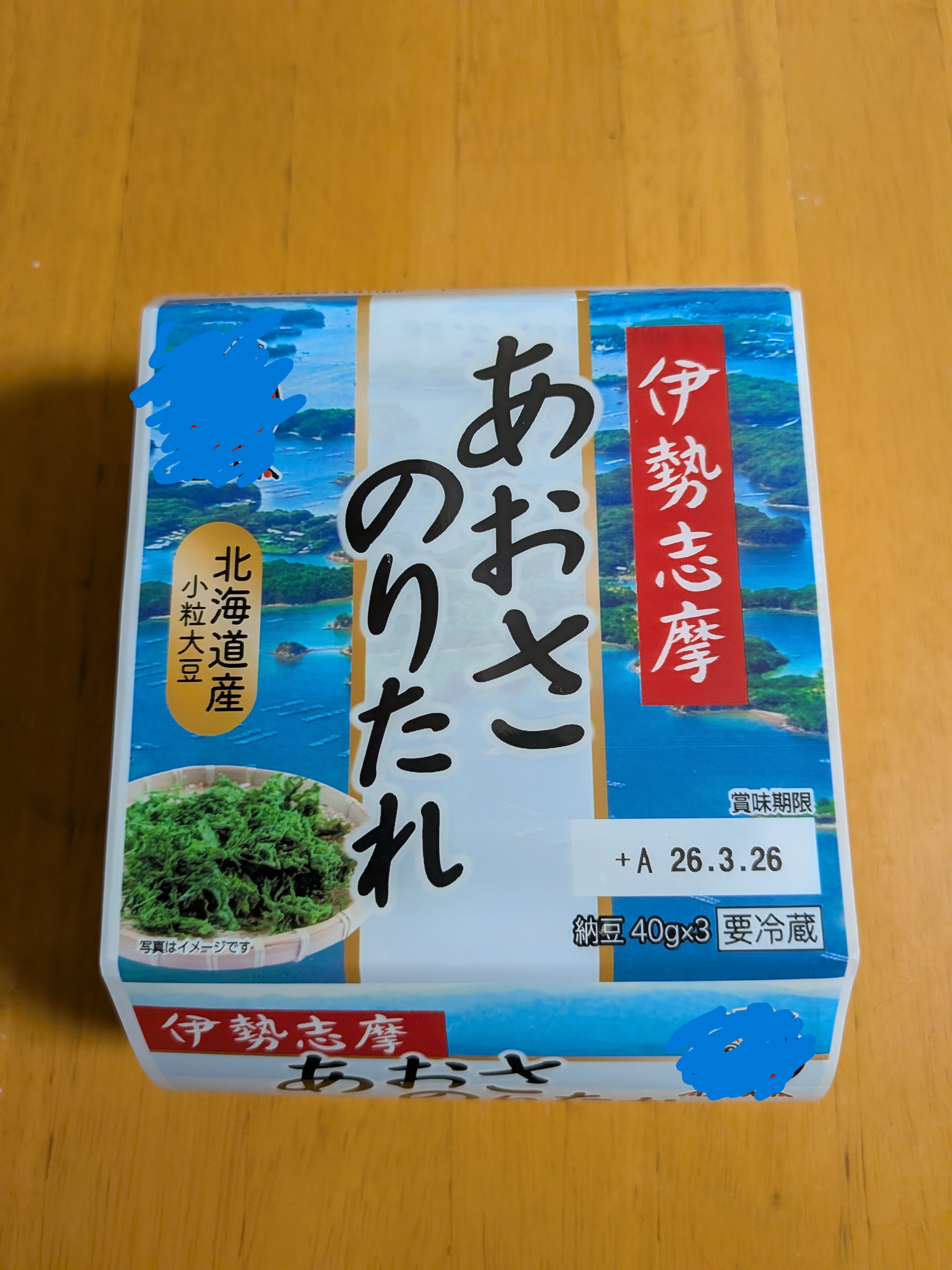・「納豆」や「大豆」の文字はあるが、写真や「あおさ・・・」の表示と比較すると、発信が弱い(表示が小さい)。