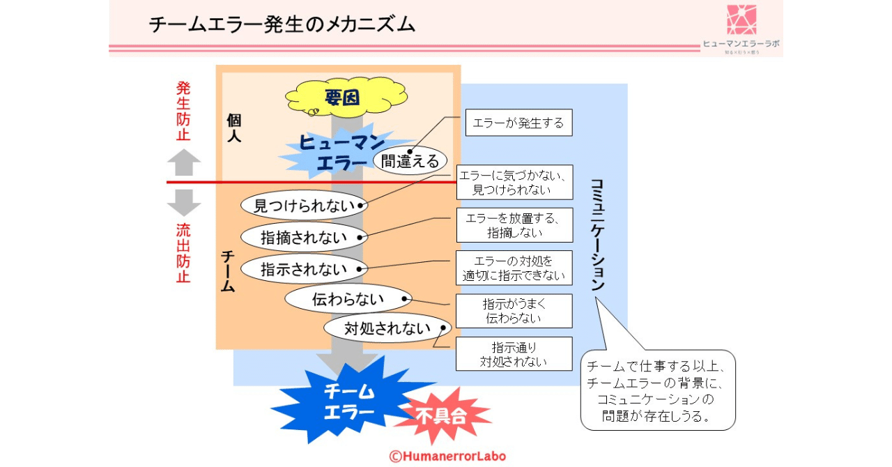 チームエラーを考える noteへの掲載 2025.02.04 この記事は約1分で読めます。 チームエラーを考える|ヒューマンエラーラボ|大西弘倫|3安(安全・安心・安定)を目指し、ヒューマンエラーを深掘りみなさまの組織、会社でもそうだと思いますが、多くの仕事が、複数人で分担して行われているのではないでしょうか。 チームで仕事をしているとはいえ、仕事を個人ごとに分担して行う以上、ヒューマンエラーに起因する問題は、個人が起こすエラーから始まりま...