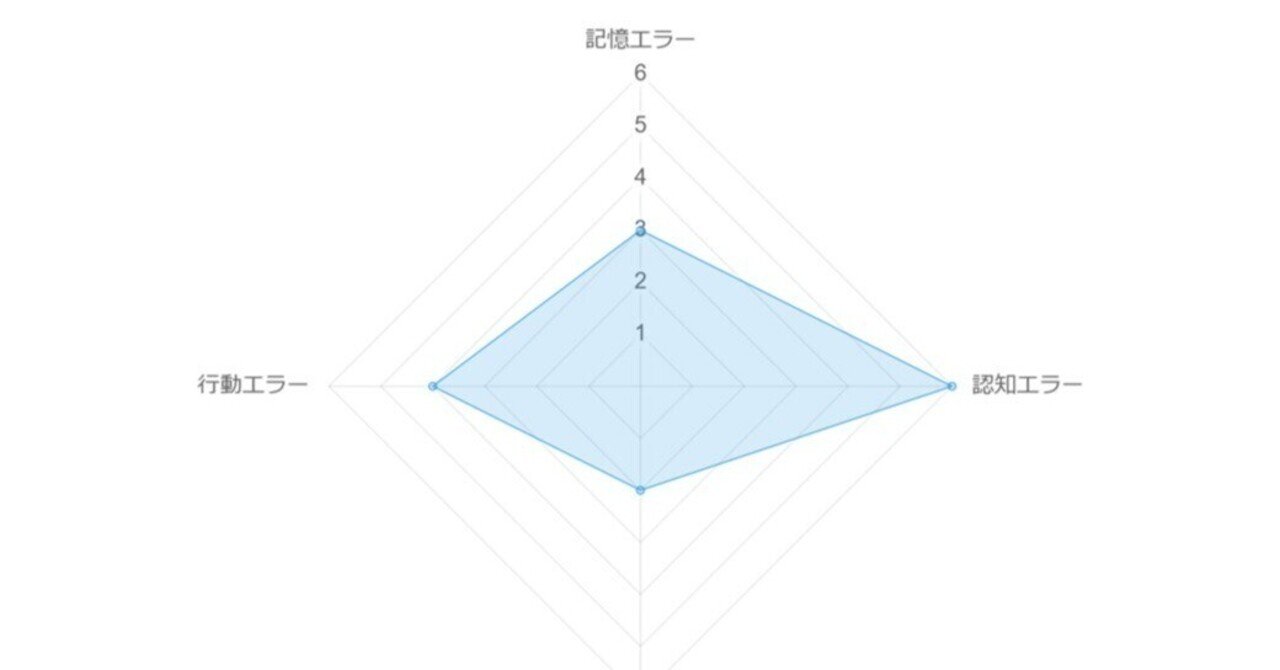 レーダーチャートの数値が高いヒューマンエラータイプほど、エラーの発生が高い傾向にあると見てください。