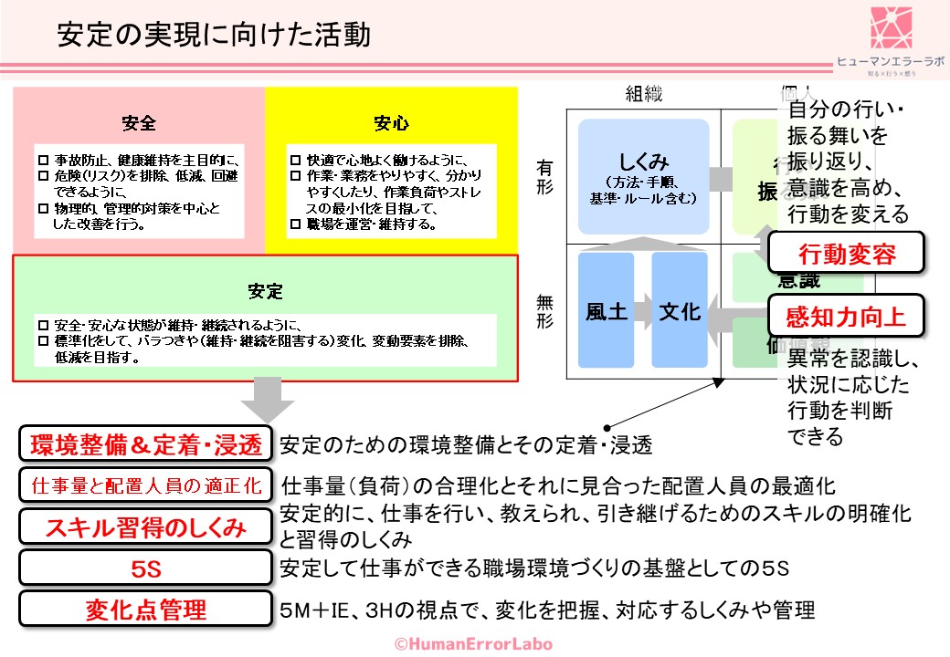 ヒューマンエラー防止を推進する活動としては、以下の3つがあります。